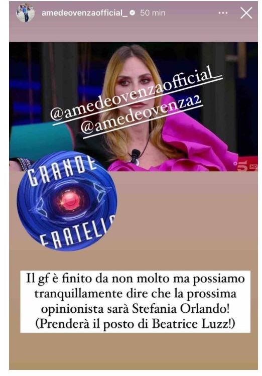Sempre secondo Venza, l’arrivo della Orlando coinciderebbe con l’uscita di scena di Beatrice Luzzi, spesso al centro di accese polemiche per le sue prese di posizione molto nette nei confronti di diversi inquilini. La Luzzi ha diviso pubblico e opinionisti, generando dibattiti dentro e fuori la Casa, ma anche attirando su di sé critiche per un atteggiamento talvolta giudicato troppo rigido o strategico.